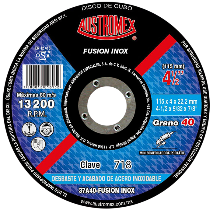 Disco con centro deprimido para desbaste de acero inoxidable grano 40